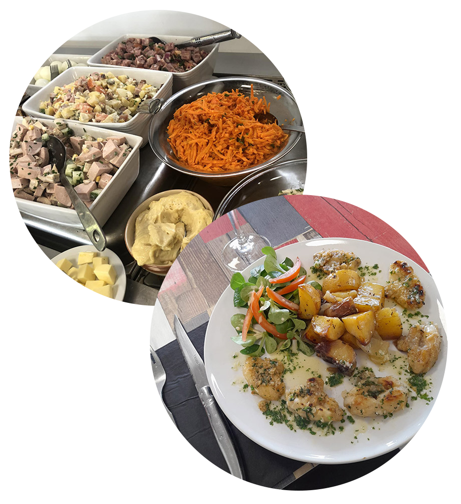 Ici venez découvrir une sélection de bons produits de l’entrée au dessert. Chez nous pas de carte, nous privilégions la qualité des plats et changeons régulièrement les sélections ! Nous défendons un gage de qualité et que vous mangiez à votre faim, avec des produits le plus possible locaux.